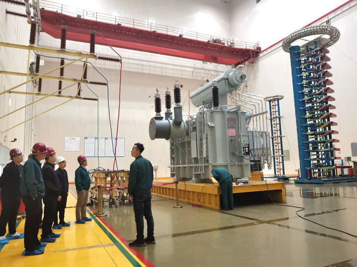 參觀過程中,易發式技術人員向甘總及隨行人員介紹了變壓器生產工藝流程、研發項目及成果轉化。